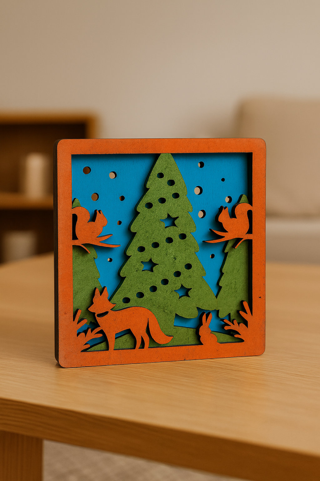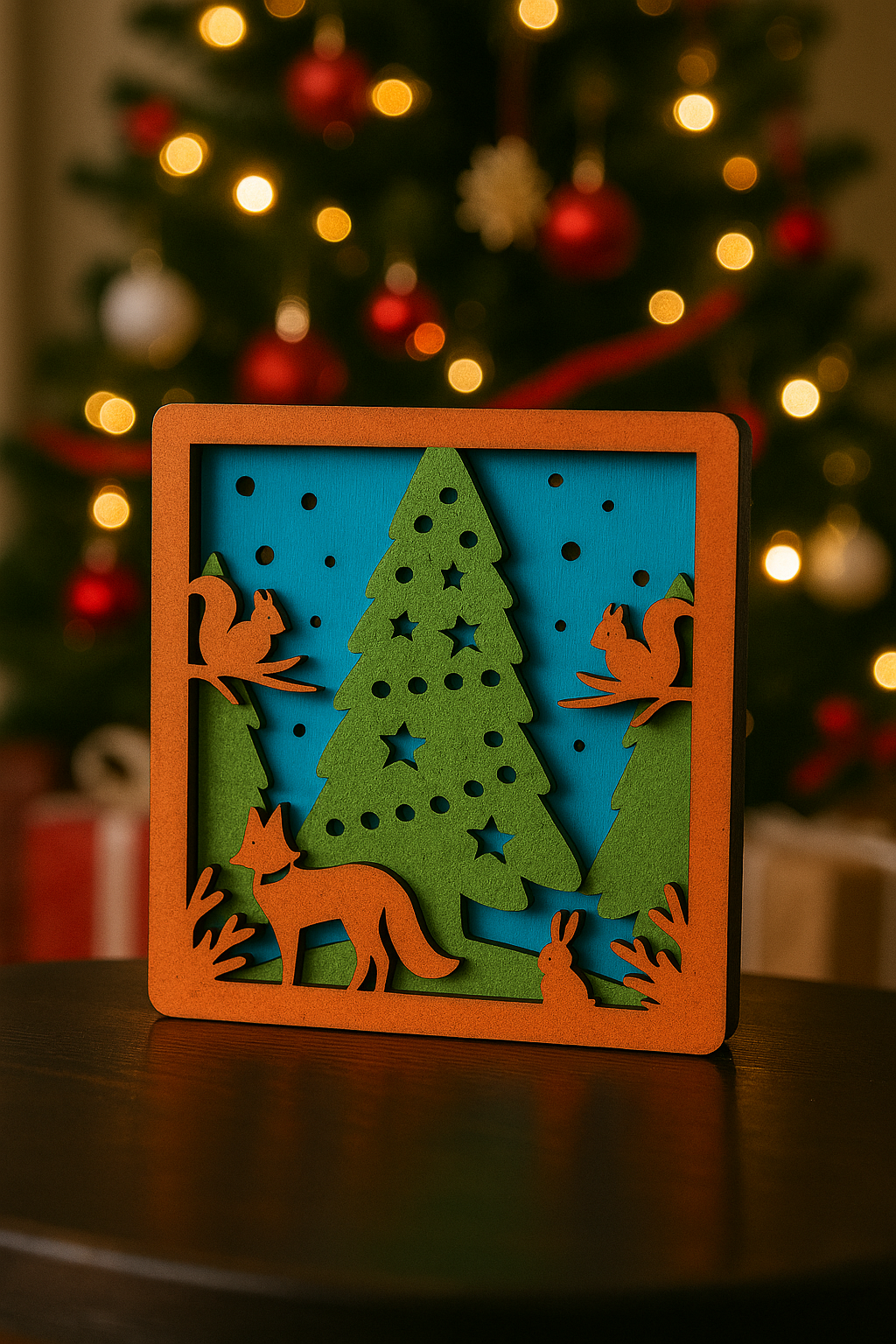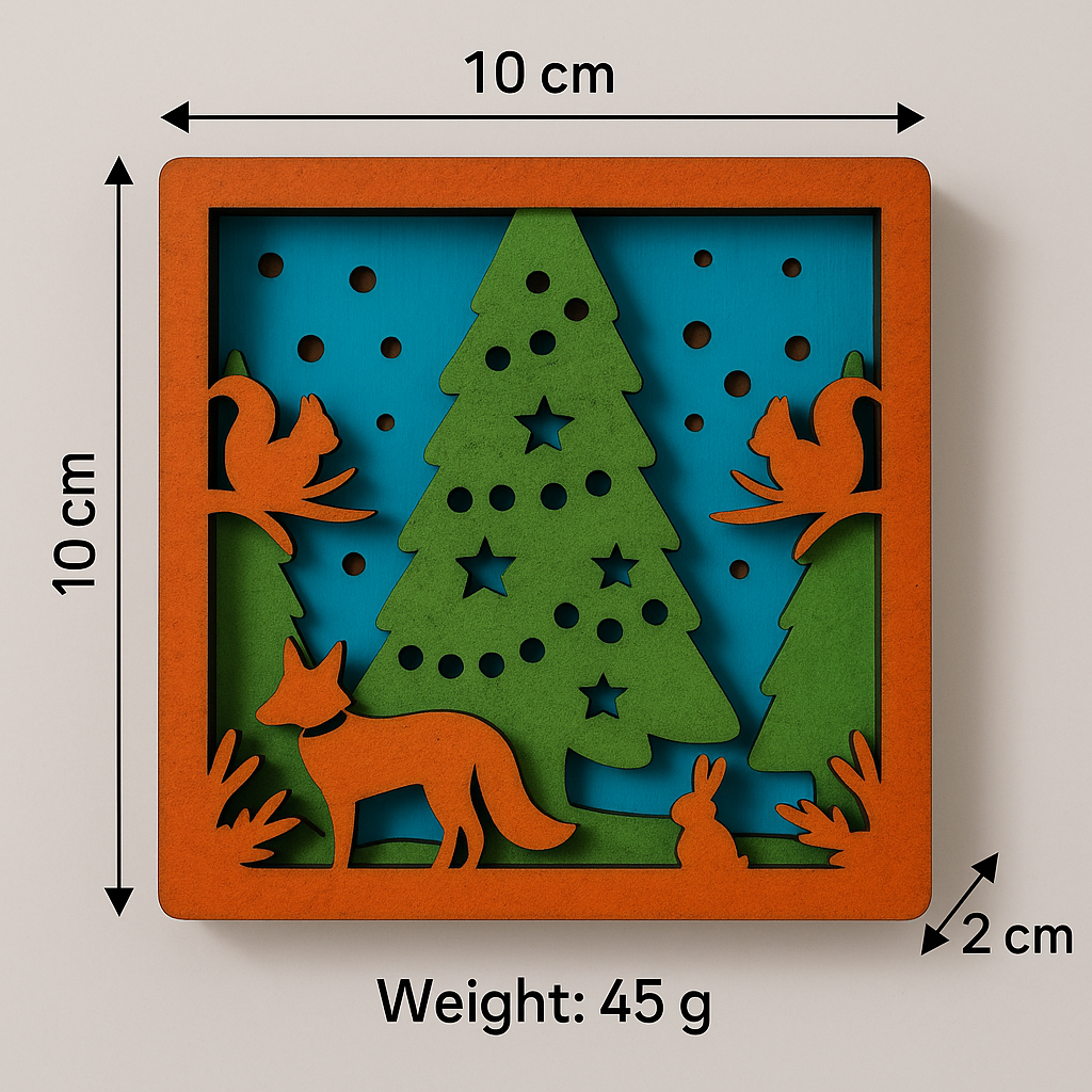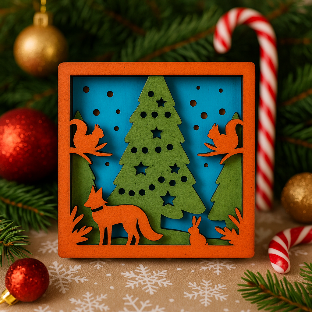 Christmas Woodland Shadow Box, Layered Tree with Forest Animals, Festive Holiday Décor, 10×10 cm, 45g