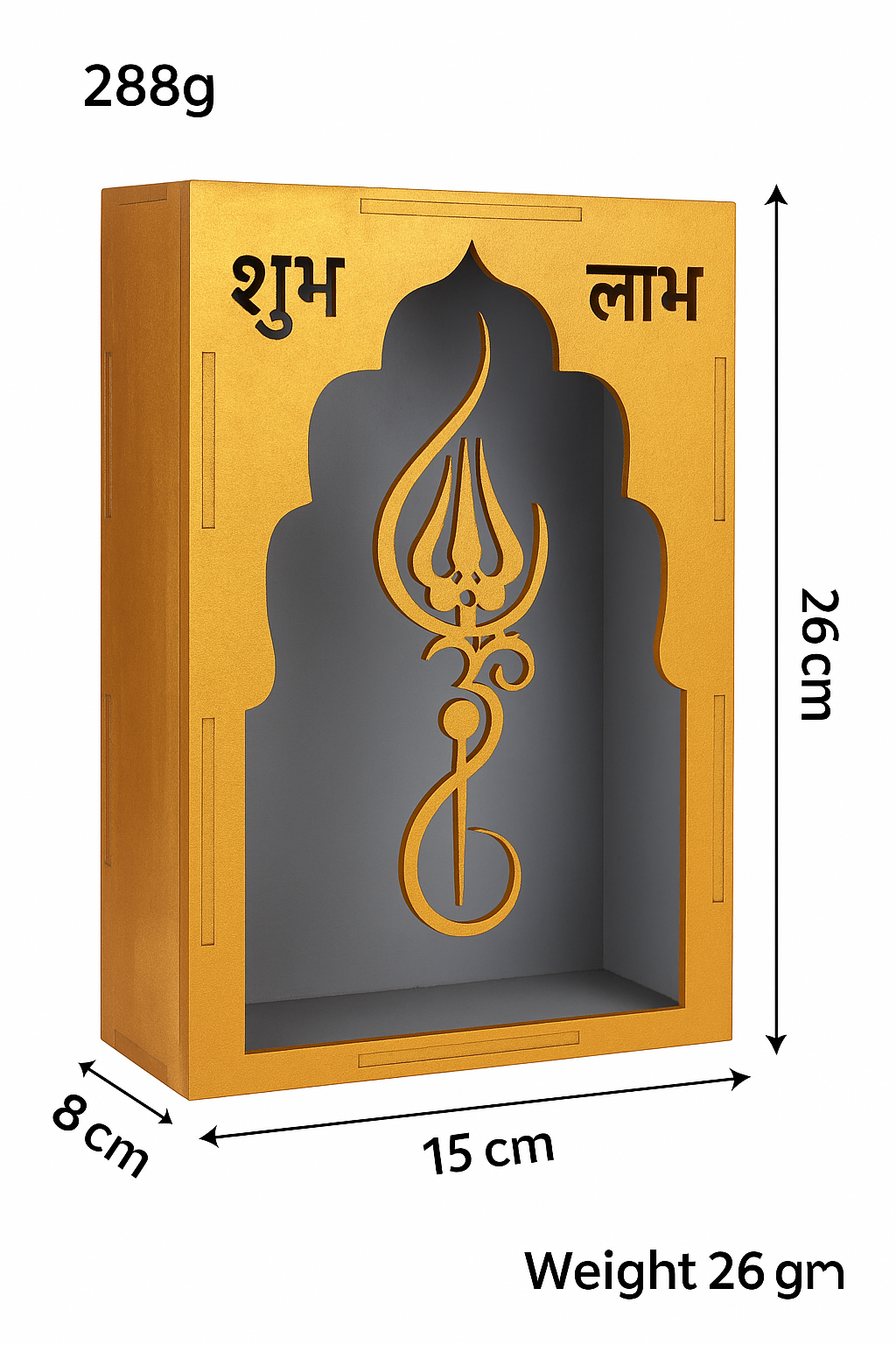 Shubh Labh Trishul Decorative Frame, Golden Finish, Temple Style Arch Design, 26cm x 15cm x 8cm, 288g